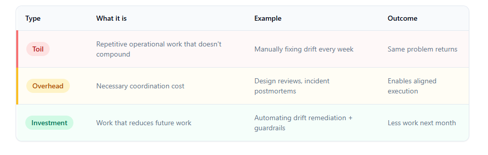 Toil vs overhead vs investment